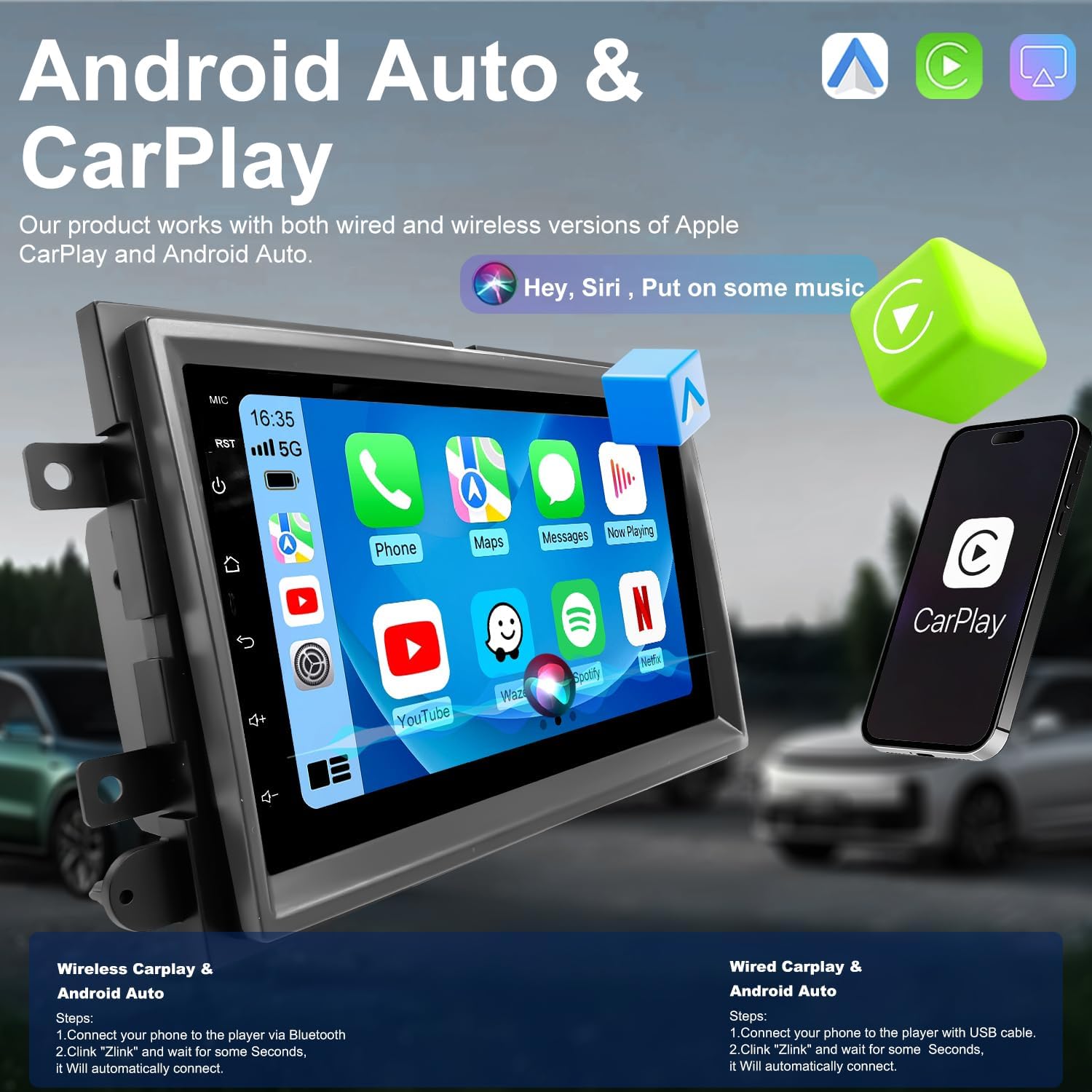 | Additional Features | 7 Inch 2+32G IPS HD Touchscreen & Split Screen Function, Lifetime Support & Easy Installation, Bluetooth & FM Radio, DSP, GPS Navigation & High-Speed 5G WiFi, Wide-Angle Back-up Camera & Steering Wheel Controls, Wireless Wired CarPlay & Android Auto |