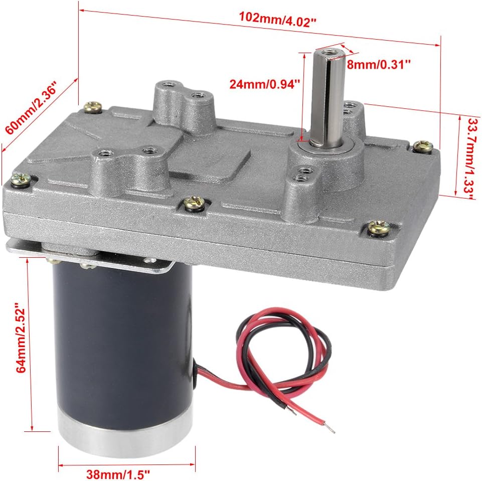 This is our new low cost, but extremely DC Gear Motor.Specification:No-load Speed: 70RPM at 24 Volts;kg.cm: 23.14;No-load Current: 0.5A;Load Current: 1.257A;D Shaft Size: 8mm x 24mm/0.31inch x 0.94inch(D*H);Gearbox Size:102mm x 60mm x 33.7mm /4.02 x 2.36 x 1.33 inches (L*W*H);Motor Size: 64mm x 38mm/2.52 x 1.5 inches (L*D);Mounting Hole Dia:3.3mm/0.13inch;Wire Length:21cm/8.27inch.
