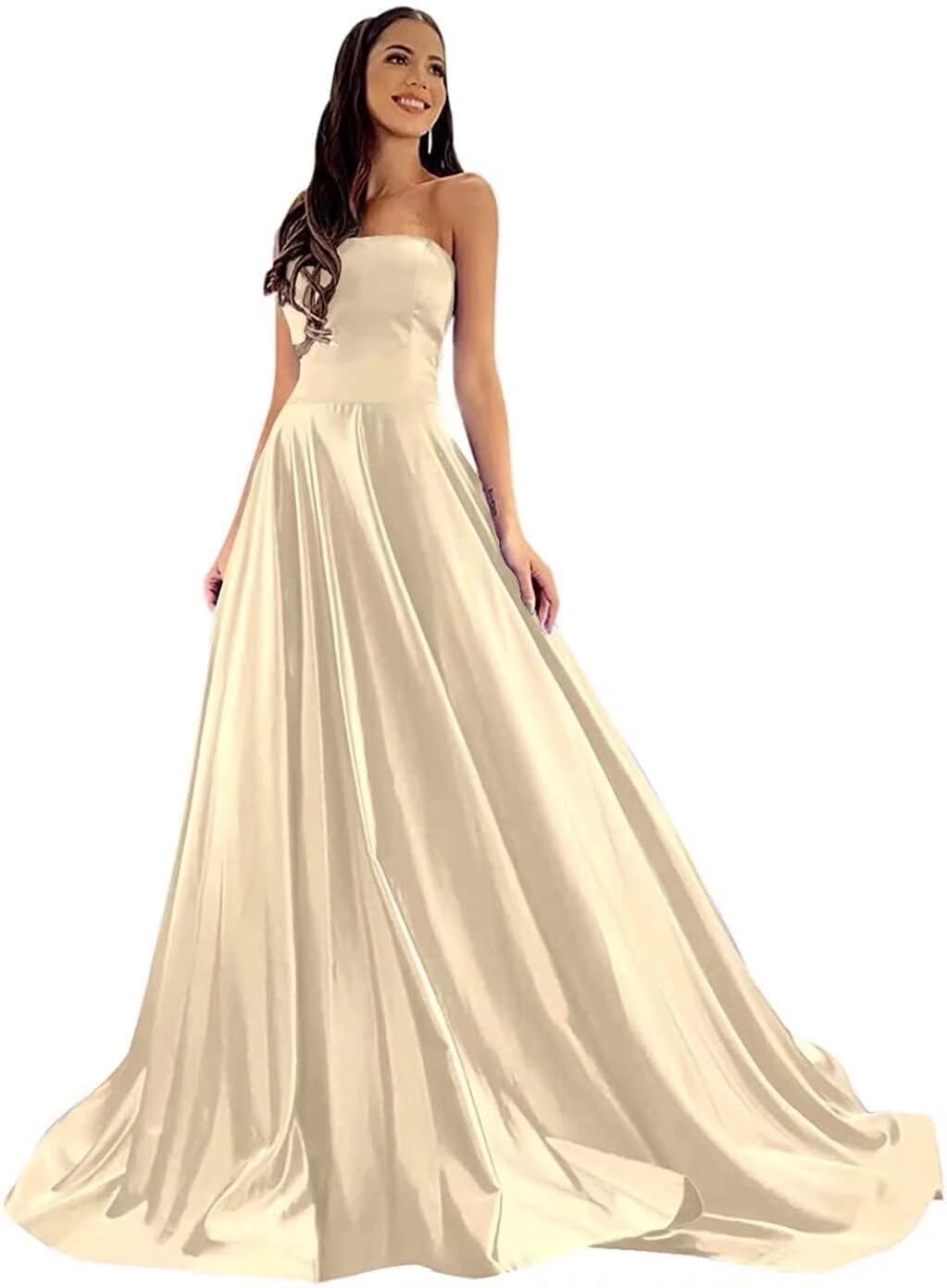Welcome! mainly make prom dresses, wedding dress, homecoming dresses, bridesmaid dresses, evening dresses, formal dresses, maternity dresses for photo shoot and mother of the bride dresses. You can choose your dress from my shop. Product Details Fabric: Satin Sleeve Length: Sleeveless Neckline: Strapless Silhouette: A Line Length: Floor Length Size Selection: Customizable Solid Color Lace-up Back For custom made dress, please complete the format below: 1.Full bust ___inch or___cm. 2.Waist ___inch or___cm. 3.Hips ___inch or___cm. 4.Hollow to the ground (shoulder to foot, without shoes) ___inch or___cm. 5.The height of your high heel shoes: _____inches. 6.Your height: _____inches.Your height: _____inches..