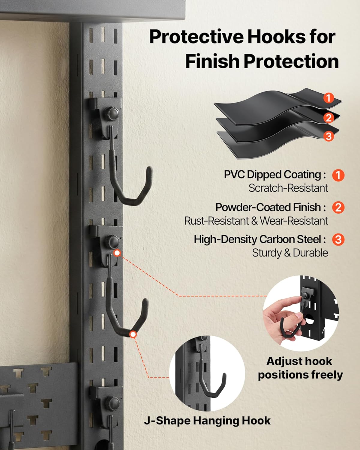 Practical Gun RackDesigned specifically for home gun rooms, garages, workshops, and hunting cabins, this gun rack provides a gun storage solution. It keeps firearms neatly organized, easily accessible, and properly displayed. Key FeaturesMultifunctional Wall-Mounted Gun RackDesigned to hold 3 long guns, this wall mount gun rack provides tactical accessory hooks, allowing for secure storage, organized arrangement, and quick access. Organized & Space-SavingSay goodbye to cluttered storage that can cause wear and damage to your firearms and make access difficult. Our rifle gun rack keeps your guns and tactical gear neatly arranged, securely stored, and always within easy reach. Multifunctional StorageDesigned with a top tray and additional hooks, this wall mount gun rack provides organized storage for tactical gear such as helmets and goggles, keeping frequently used items centrally managed. Scratch-Resistant Coating, No DamageFeaturing powder-coated, PVC-coated J-shaped hooks, the rifle shotgun rack holds firearms securely while minimizing scratches and slippage. It keeps firearms in excellent condition during long-term storage. Wide ApplicationThis wall-mounted rifle rack is suitable for indoor walls, garages, hunting cabins, and closets. It keeps firearms organized and easily accessible across a variety of residential and recreational spaces. Easy InstallationThe gun rack includes clear instructions and complete accessories, allowing fast installation without complex tools or professional help. SpecificationItem Model Number: RF-SN-045AMaximum Gun Capacity: 3 RiflesMain Material: Carbon Steel Package Content1 x Gun Rack1 x Screw & Anchor Set