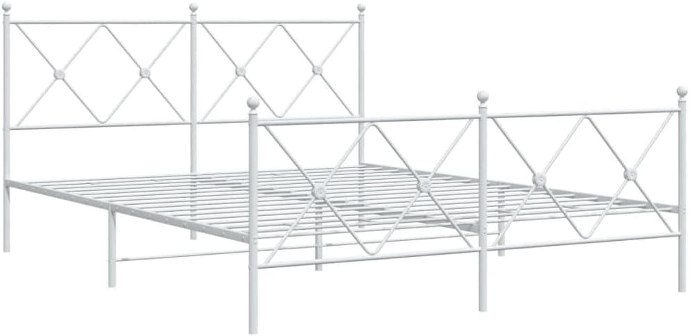 This Metal Bed Frame with Footboard perfectly marries classic design with solid materials, making it an ideal centerpiece for your bedroom. The eye-catching white finish brings a touch of elegance to both modern and traditional decor, ensuring it fits well in any relaxation space.Timeless Style: Built with a classic design, this bed frame fits right into any bedroom look, making it a calm and welcoming space.Sturdy Construction: Made from high-quality steel, this frame is all about durability and support, perfect for everyday use.Comfortable Size: At 76 x 80 in, it offers ample room for 2 people, ensuring a good night’s sleep.Functional Headboard and Footboard: These not only make it look good but also keep your pillows and bedding neatly in place.Easy Maintenance: The smooth surface means cleaning is quick and easy, keeping everything tidy and welcoming.Color: WhiteShape: RectangularMaterial: Metal SteelIndoor/Outdoor: Indoor OnlyCover Included: NoRoom: BedroomCapacity: Not specifiedDimensions: 78 x 81.5 x 35.6 in (W x L x H)Surface Height: 0.4 inLeg Height: 7.9 inWeight: 55.56 lbsSwings: NoBrand: vidaXLDelivery Contains: Bed frameAssembly Required: YesSKU: 376575EAN: 8721012374591