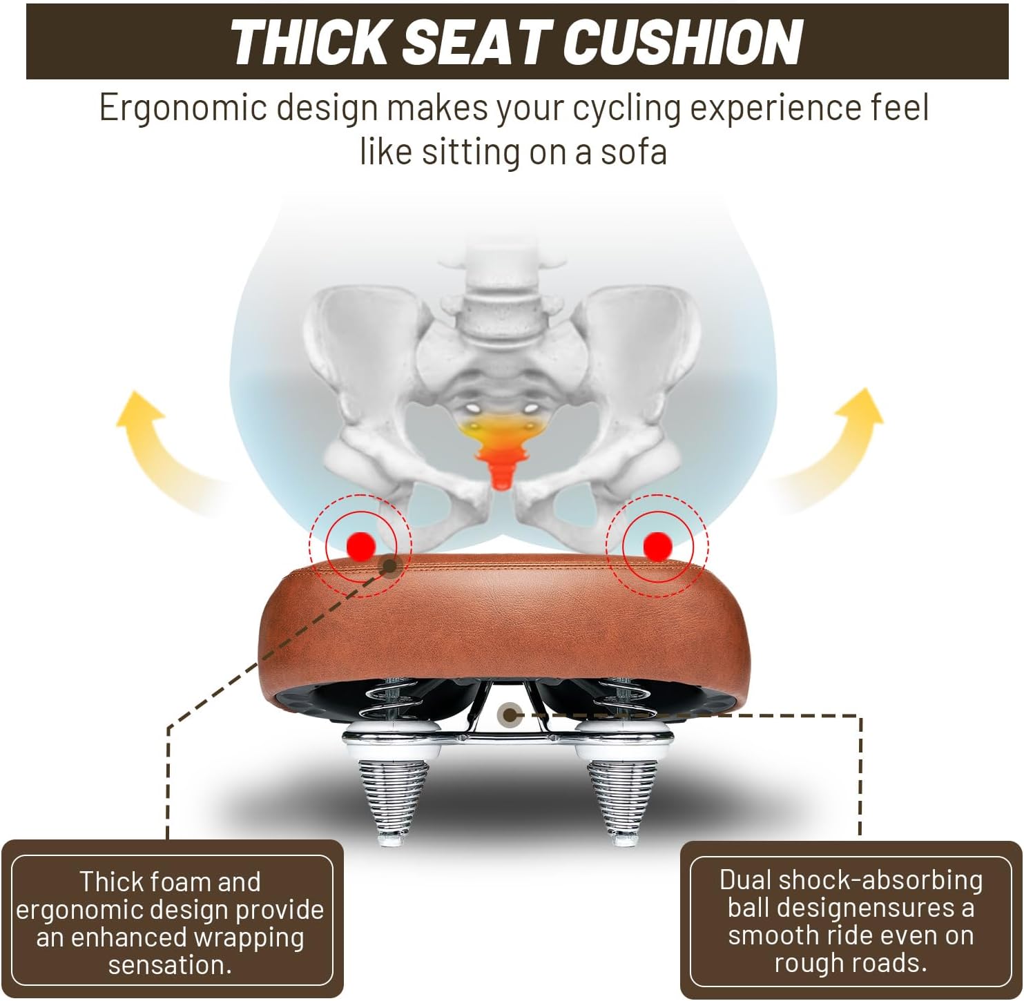 Upgrade your ride with the Time Capsule Series Wide Bike Seat. Vintage brown PU leather, Steel springs, perfect for comfort and style on city and cruiser bikes!