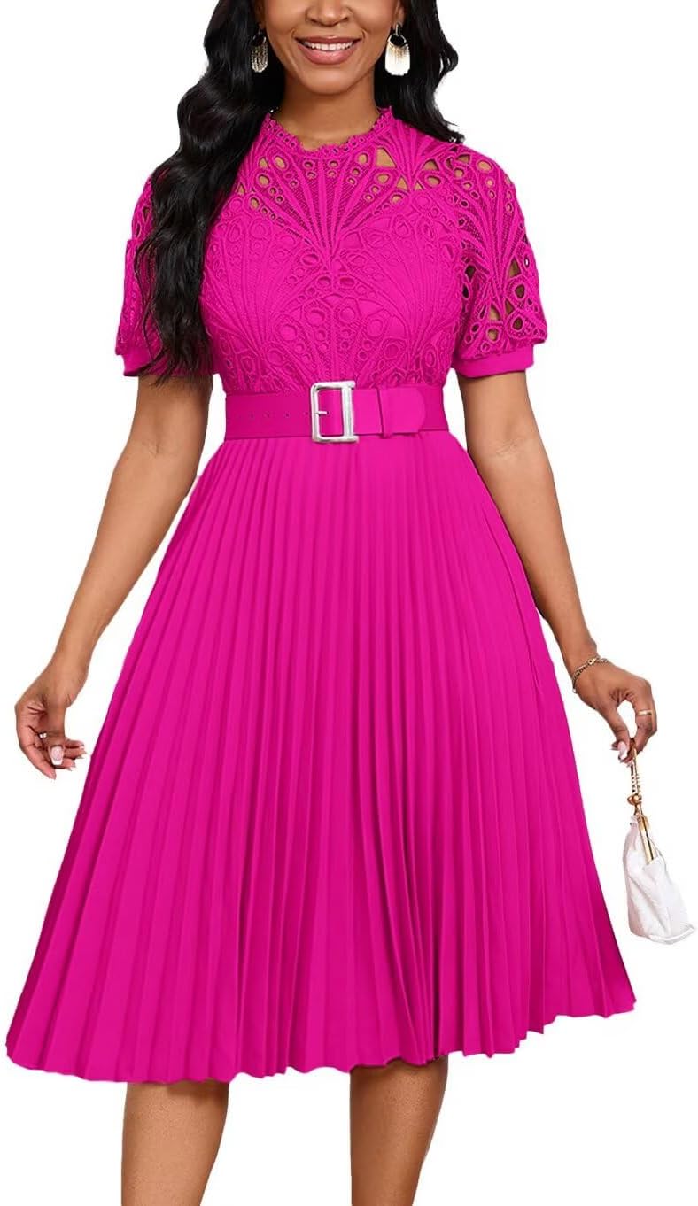 Material:Flattering with lace and puff sleeve design.Comfortable to wear, unique style, make you more beautiful, fashion, sexy and elegant Design:Floral Lace, Hollow Out, Panel Design, Short Sleeve, Crew Neck, Pleated, A-line, Zipper Back, With Belt Occasions:This dress is perfect for fall occasions such as casual outdoor events, shopping trips, or dinners with friends and family. The long length and flowy design create an elegant look that can be dressed up or down as needed. Feature:Hollow out design with floral lace pattern, add a feminine look to your dress and easily show your sexy figure Tip:There are two versions of this dress, one with a belt and one without! Mini dresses for women square neck puff sleeve ruffled hem dress bohemian floral printed dress short beach dresses,square neck puff sleeve ruffled hem mini dress, women dress summer v neck mini floral print swing dress sleeveless spaghetti strap skater dresses, women's v-neck spaghetti strap dress summer casual swing sundress, womens summer floral wrap v neck adjustable spaghetti casual ruffle dress long sleeve summer dress for women short summer dresses teen dresses summer wedding guest dress spring maxi dress professional dresses for women for work summer maxi dress women dresses for wedding guest dresses with pockets brunch dress cocktail dresses for women womens dresses with pockets spring wedding guest dress wrap dress for women summer teacher dresses for women maxi dresses casual summer dresses spring dresses for women 2026 wedding guest