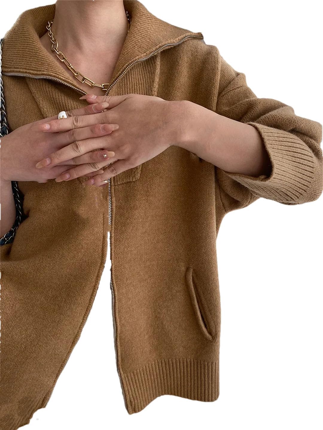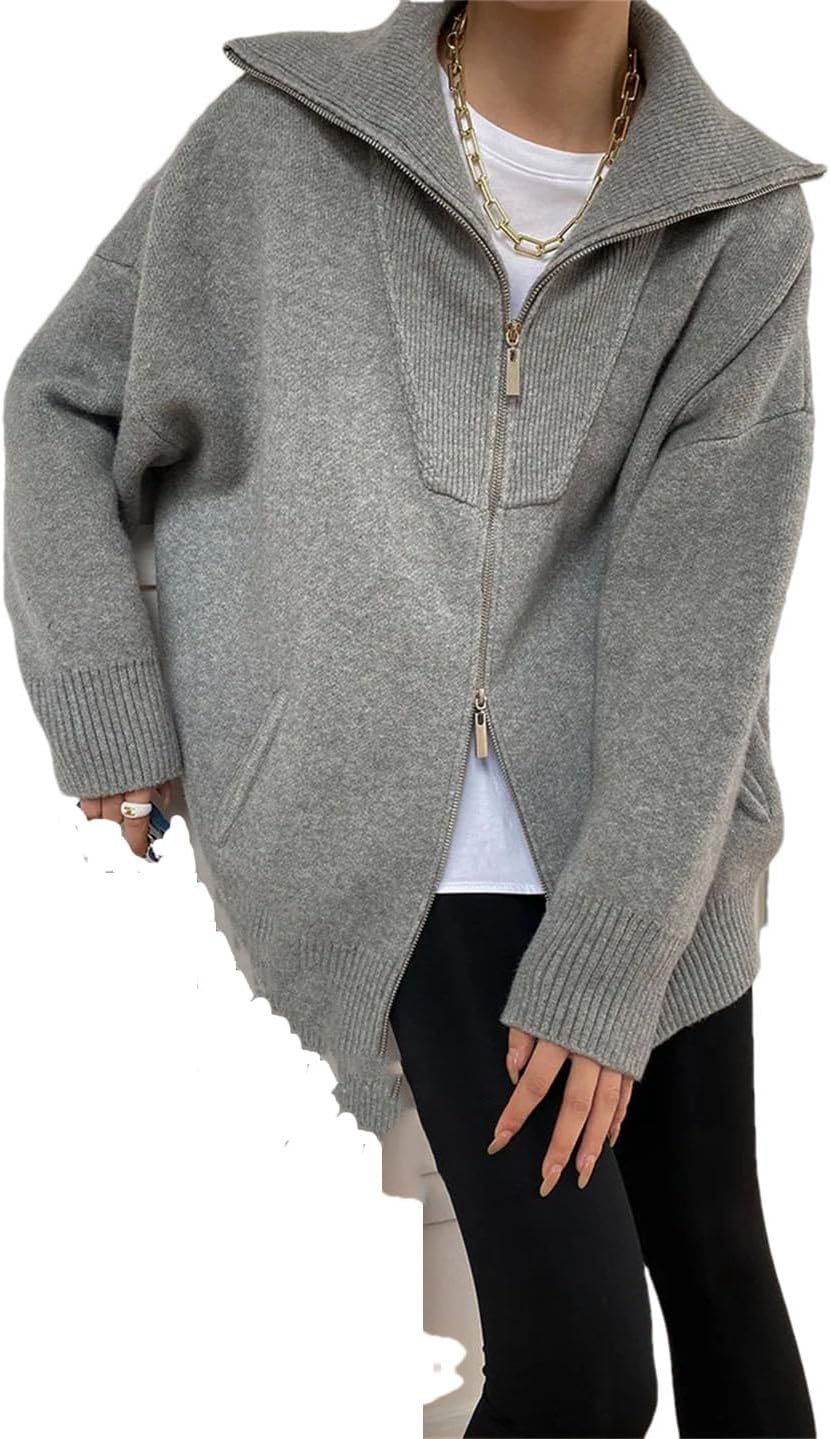 Material: Polyester, AcrylicMaterial Composition: AcrylicKnitting Technology: KnittingPattern: LooseYarn Thickness: Ordinary YarnSeason: Autumn/WinterThickness: StandardClosure Type: Plain NeedlePattern Type: Solid ColorGender: FemaleSleeve Length (Cm): FullStyle: CasualDecoration: NoneSleeve Type: RegularCollar: LapelClothing Length: RegularElasticity: Medium StrengthFit Type: Loose Fit