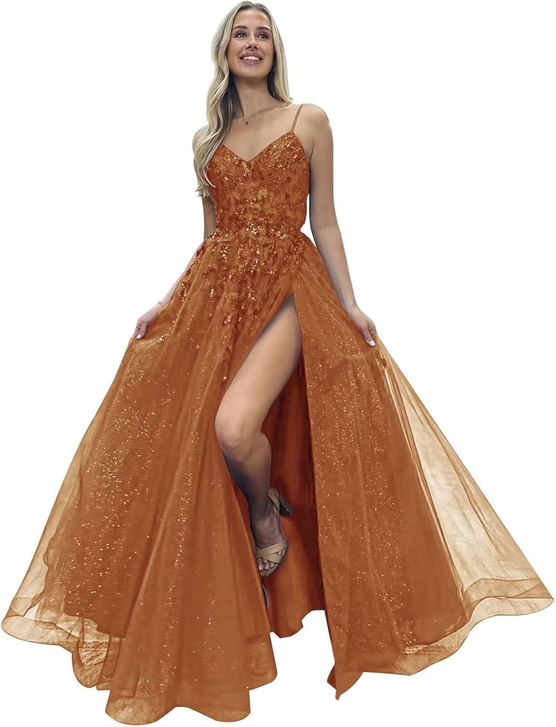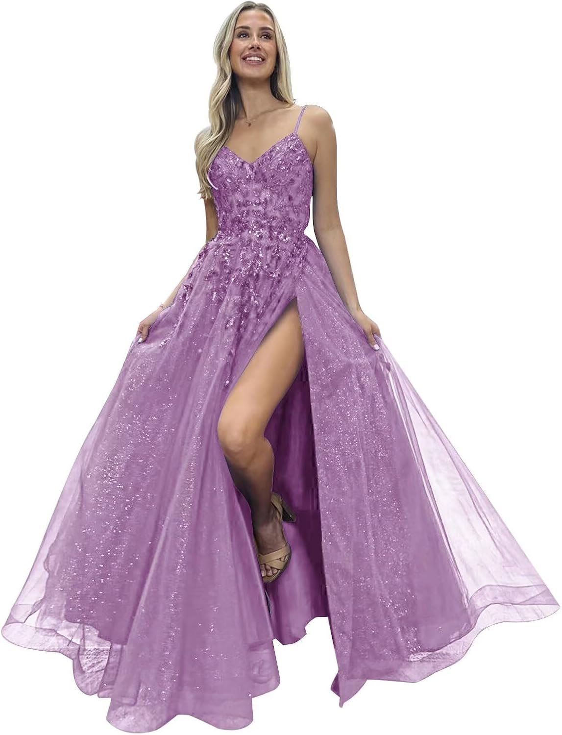 | Fabric Type | Glitter Tulle Prom Dress with Sparkly Lace Appliques |
